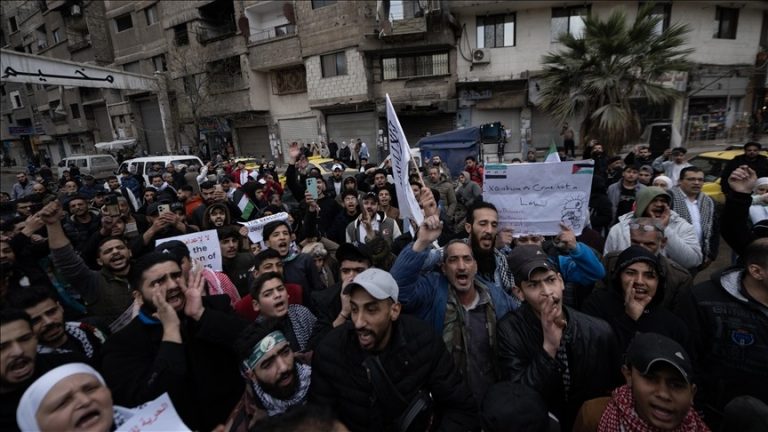 دمشق – (مرکزاطلاعات فلسطین فاؤنڈیشن) شام کے دارالحکومت دمشق اور کئی دیگر شامی شہروں میں قابض اسرائیل کی نام نہاد پارلیمنٹ کنیست کی جانب سے حال ہی میں منظور کیے گئے فلسطینی اسیران کی سزائے موت کے کالے قانون کے خلاف شدید احتجاجی مظاہرے کیے گئے۔ مظاہرین اقوام متحدہ کے ہائی کمشنر برائے مہاجرین کے دفتر کے سامنے جمع ہوئے جہاں انہوں نے عربی، عبرانی اور انگریزی زبانوں میں لکھے ہوئے کتبے اٹھا رکھے تھے۔ ان بینرز پر اس ظالمانہ قانون کی منسوخی اور فلسطینی شہریوں کے خلاف قابض اسرائیل کی سفاکیت کو فوری طور پر روکنے کے مطالبات درج تھے۔