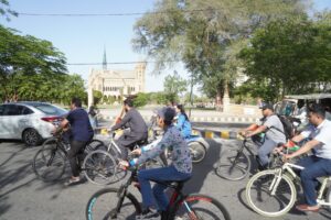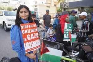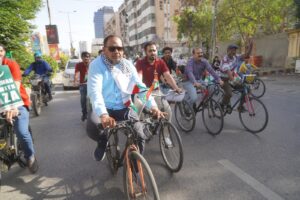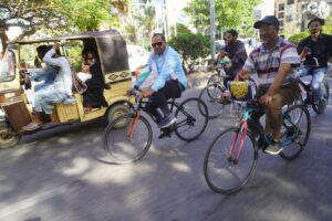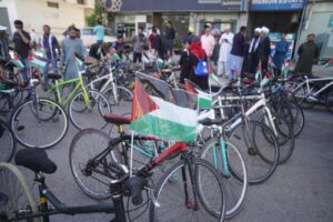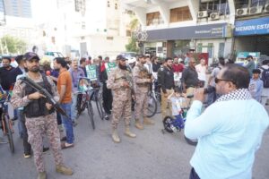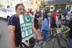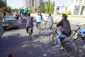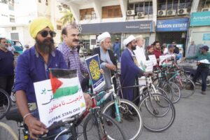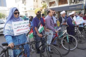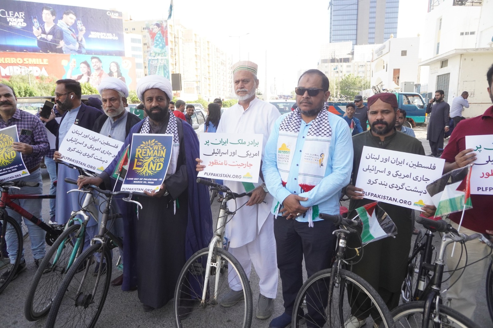کراچی-(مرکزاطلاعات فلسطین فاؤنڈیشن) 30مارچ عالمی یومِ ارض کے موقع پر فلسطین فاونڈیشن کے زیرِ اہتمام کلفٹن کے علاقے تین تلوار سے سائیکل ریلی نکالی گئی جو مختلف شاہراہوں سے ہوتی ہوئی کراچی پریس کلب پہنچ کر اختتام پذیر ہوئی، جہاں احتجاجی مظاہرہ اور جلسہ منعقد کیا گیا۔یکجہتی فلسطین ،لبنان وایران سائیکل ریلی میں سیاسی و مذہبی جماعتوں کے قائدین، سماجی رہنما اور سول سوسائٹی سمیت اقلیتی برادری کے رہنمائوں بشمول ڈاکٹر صابر ابو مریم، ڈاکٹر معراج الہدی صدیقی، علامہ حیات نجفی، صاحبزادہ ثاقب نوشاہی، اسرار عباسی، عرم بٹ، علامہ مرزا طاہر، بشیر سدوزئی، جمشید حسین، پیر معاذ نظامی سمیت افراد کی بڑی تعداد نے شرکت کی۔