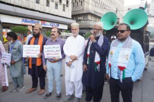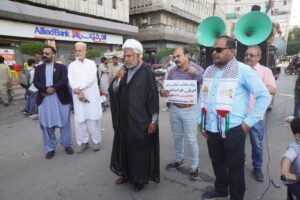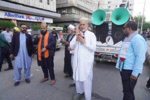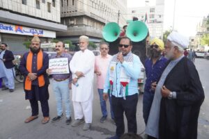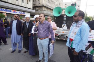 انشا اللہ اسرائیل ڈوبنے والا ہے۔اس کے یار بھی اس کے ساتھ غرق ہوجائیں گے۔آج امت مسلمہ کو ایران کے ساتھ کھڑا کونا ہوگا۔ایران سمیت حماس و حزب اللہ کے مجاہدین کو سلام پیش کرتے ہیں ۔انسانیت پر قیامت ڈھانے والے رو رہے ہیں ۔امریکہ انڈیا اور اسرائیل کو جلد شکست ہوگی۔امت مسلمہ بہت جلد فلسطین کی آزادی دیکھے گی ۔مقررین نے اس عزم کا اظہار کیا کہ امتِ مسلمہ متحد ہو کر مظلوم اقوام کی حمایت جاری رکھے گی اور خطے میں امن کے قیام کے لیے آواز بلند کرتی رہے گی۔