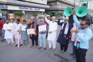 مقررین کا کہنا تھا کہ پاکستانی عوام اپنے فلسطینی بھائیوں کے ساتھ کھڑے ہیں اور بیت المقدس کی آزادی تک جدوجہد جاری رکھی جائے گی۔ انہوں نے کہا کہ دنیا بھر میں مظلوم اقوام کے ساتھ اظہارِ یکجہتی ضروری ہے، خصوصا فلسطین اور کشمیر کے عوام کے ساتھ۔مقررین نے امریکہ اور اسرائیل کی جانب سے انسانی حقوق کی سنگین خلاف ورزیوںکی مذمت کرتے ہوئے کہا کہ فلسطین، لبنان اورایران کو نسل کشی کانشانہ بنایا جا رہا ہے۔
