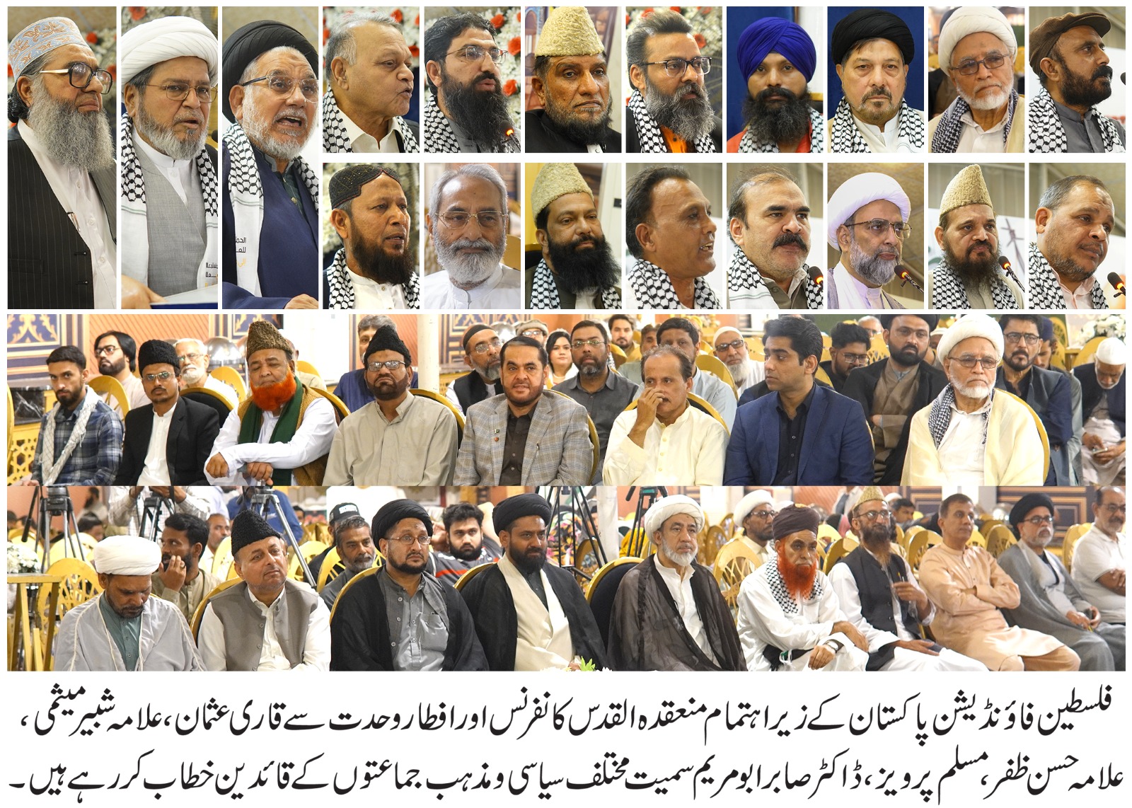 کانفرنس کے اعلامیے میں کہا گیا کہ جمعۃ الوداع کے موقع پر ملک بھر میں ریلیاں، سیمینارز اور احتجاجی مظاہرے منعقد کیے جائیں گے، جن میں فلسطینی عوام سے اظہارِ یکجہتی اور اسرائیلی جارحیت کے خلاف بھرپور آواز بلند کی جائے گی۔ عوام سے اپیل کی گئی کہ وہ بڑی تعداد میں یومِ القدس کے پروگراموں میں شرکت کریں اور مظلوم فلسطینی عوام کے ساتھ اپنی وابستگی کا اظہار کریں۔ مقررین نے کہا کہ غزہ اور لبنان میں اسرائیلی جارحیت کی مذمت کرتے ہیں اور اسے فی الفور بند ہونا چاہئیے، انہوںنے کہاکہ نام نہاد امن کونسل بنا کر غزہ کو تجارتی منصبوں کی بھینٹ چڑھایا جا رہاہے جس کو پاکستانی عوام تسلیم نہیں کریں گے۔ اانہوںنے کہا کہ ٹرمپ کا بنایا گیا بوڑد آف پیس فلسطینی مزاحمت کو غیر مؤثر بنانے کی ایک سازش ہے۔ نام نہاد امن کونس کافورم درحقیقت فلسطینی عوام کے حقِ مزاحمت کو کمزور کرنے اور اسرائیلی مفادات کے تحفظ کا ذریعہ ہے۔انہوں نے حکومتِ پاکستان سے مطالبہ کیا کہ وہ فوری طور پر اس بورڈ سے اپنی شمولیت واپس لے اور واضح مؤقف اختیار کرے کہ پاکستان کسی ایسے اقدام کا حصہ نہیں بنے گا جو فلسطینی عوام کے بنیادی حقوق کے منافی ہو۔