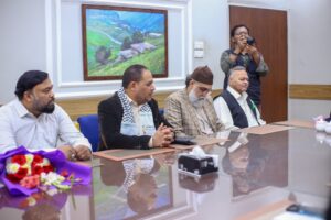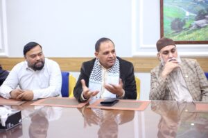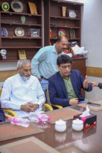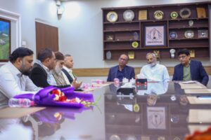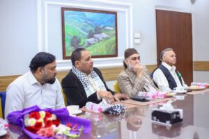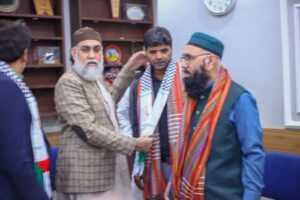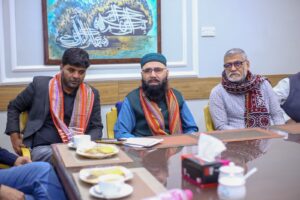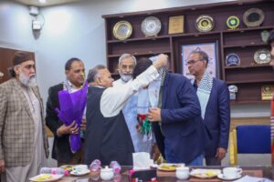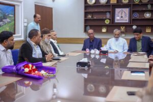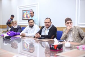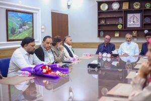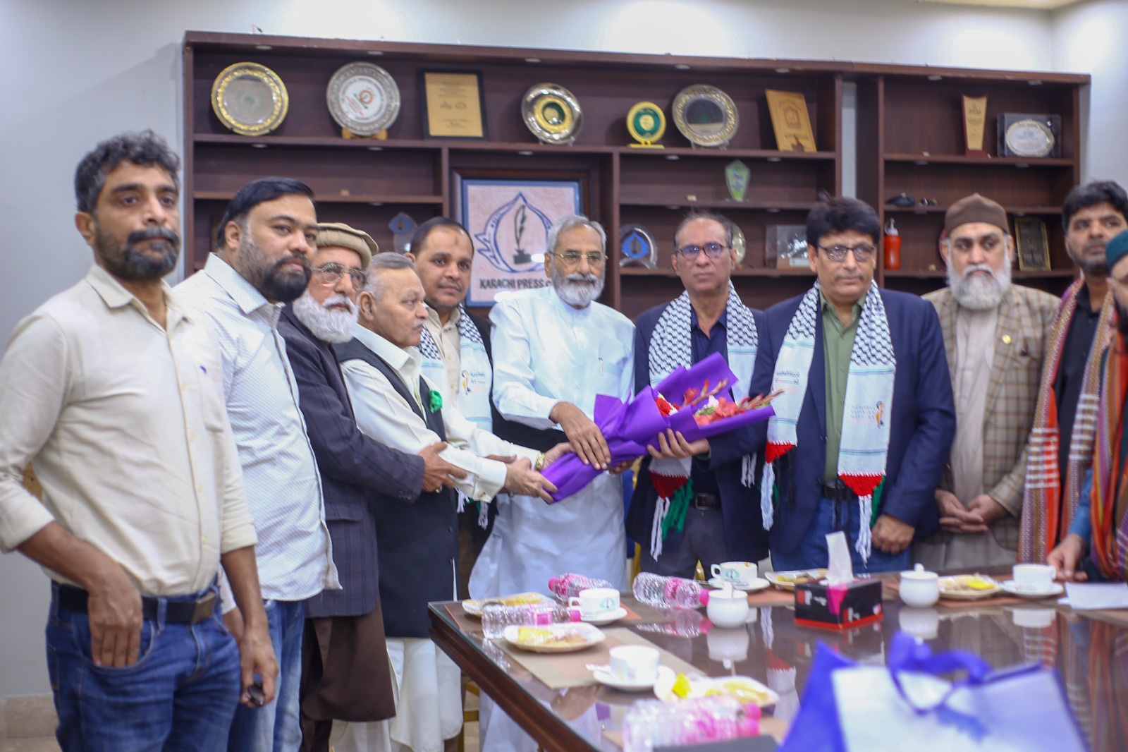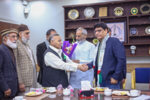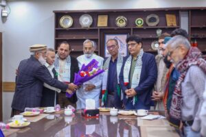 کراچی (مرکزاطلاعات فلسطین فاؤنڈیشن) فلسطین فائونڈیشن پاکستان کی سرپرست کمیٹی کے اراکین بشمول جماعت اسلامی کے نائب امیر مسلم پرویز، متحدہ قومی موومنٹ کے ساب رکن سندھ اسمبلی محفوظ یار خان، پاکستان مسلم لیگ نواز کے پیر ازہر علی ہمدانی، قاضی زاہد اور فلسطین فائونڈیشن پاکستان کے سیکرٹری جنرل نے کراچی پریس کلب میں نو منتخب صدر اور سیکرٹری سمیت کابینہ کے اراکین سے ملاقات کی اور مبارک باد دیتے ہوئے کہاکہ صحافی برادری نے ہمیشہ حق کی آواز کو اجاگر کرنے میں اہم کردار ادا کیا ہے۔ ملاقات کے دوران کراچی پریس کلب کے نو منتخب اراکین میں نائب صدر ارشاد کھوکھر۔ سیکرٹری اسلم خان، جوائنٹ سیکرٹری فاروق سمیع سمیت عبد الجبار، ناصر سومرو، عمران ایوب، شیما صدیقی اور دیگر موجود تھے۔ملاقات میں فلسطین فائونڈیشن کے سیکرٹری اطلاعات علی احمر بھی موجود تھے۔