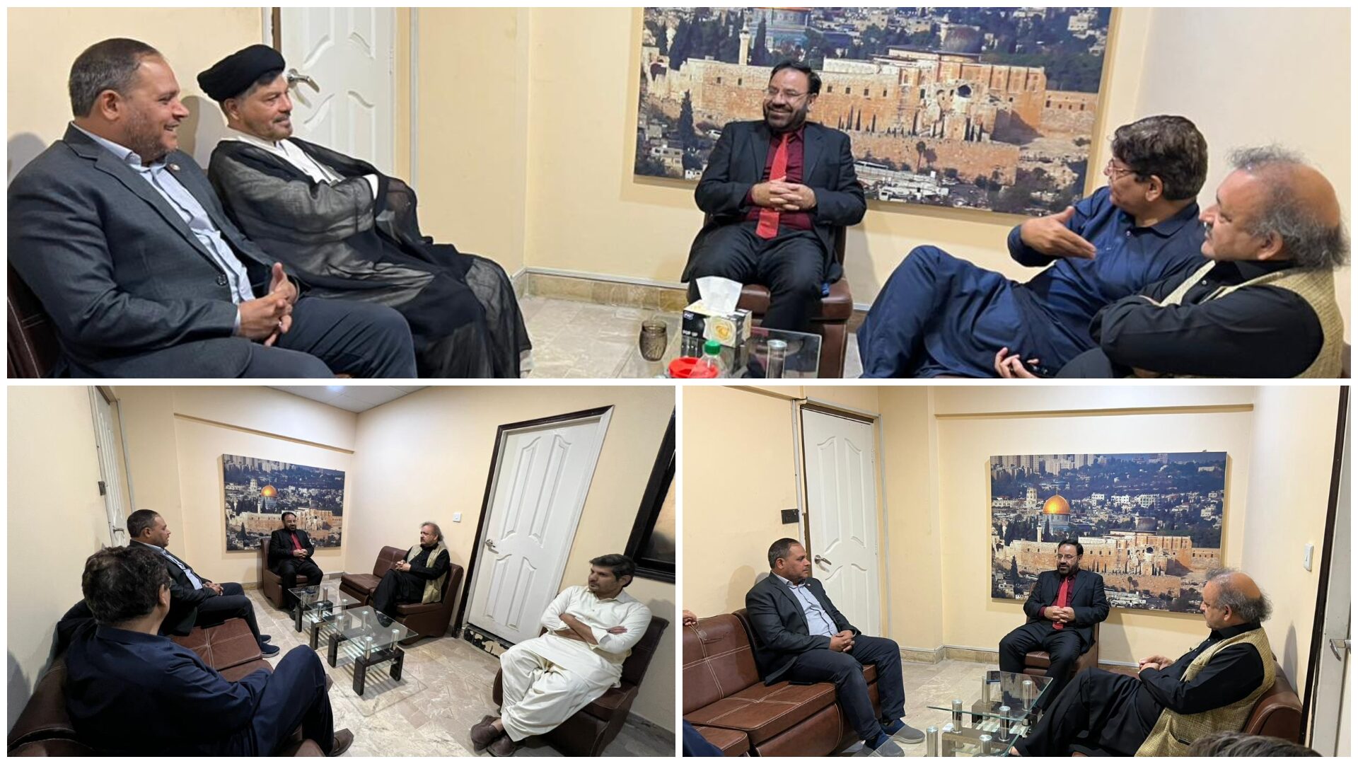 کراچی — کل جماعتی حریت کانفرنس (APHC) کے رہنما شیخ متین، آزاد جموں و کشمیر کے سابق ڈپٹی اسپیکر سلیم بٹ، بشیر صادوزئی اور علامہ باقر عباس زیدی نے فلسطین فاؤنڈیشن پاکستان کے دفتر کا دورہ کیا۔